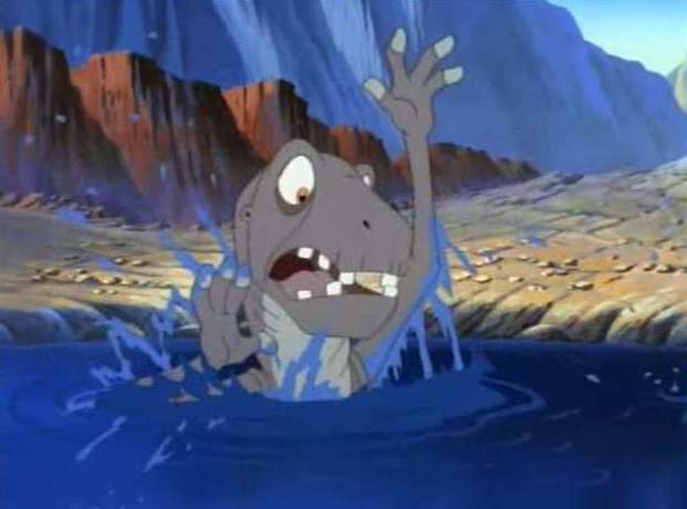 Contrary to what the above picture says this is not Disney. Littlefoot follows a frog, and he runs into Cera. They play a bit until…